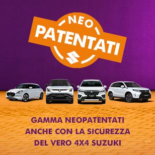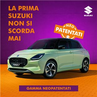 Sei Neopatentato e Vuoi guidare una nuova SUZUKI per i tre anni previsti dalla nuova normativa con la manutenzione ufficiale Suzuki inclusa nel prezzo? Per te Nuova Swift Hybrid TOP a 99€ al mese!
